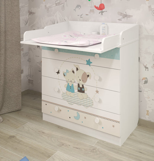 Shefa 800 Kids Changing Dresser Sleepy Kittens White (2 Boxes)