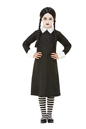Smiffy's Gothic School Girl Costume, Black with Dress & Wig, Halloween Child Fancy Dress, Child Dress Up Costumes