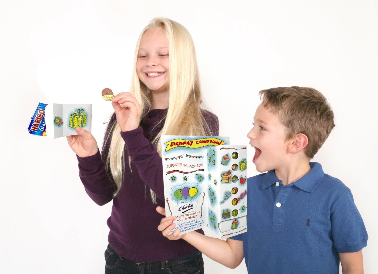 7 DAYS TO GO Birthday Countdown for both kids and adults. It’s the world’s first sustainable self-fill birthday countdown that allows the whole family to countdown to birthdays offering years of fun. You can personalise for each member of the family using the 5 message cards. It’s designed so you can fill with your own surprises from small gifts, confectionery, home made cookies or simple messages perhaps including a favourite activity. And you don’t have to throw it away like most other Advent Calendars and Birthday Countdown Calendars as it’s a high quality NO PLASTIC reusable card design. Filled with your own surprises. Easy self assembly. Box contents are NOT included. Includes 7 boxes ready to fill with your own surprises from sweets, small gifts, messages. Personalise with the recipient's name and message on special inserts provided (4 message/name inserts for all the family). Excitement, surprise and enjoyment guaranteed. High quality reusable design for enjoyment year after year. Fully recyclable. Comes flat packed with very easy assembly. Fill with your own treats, messages. Box size 8x8x3cm.