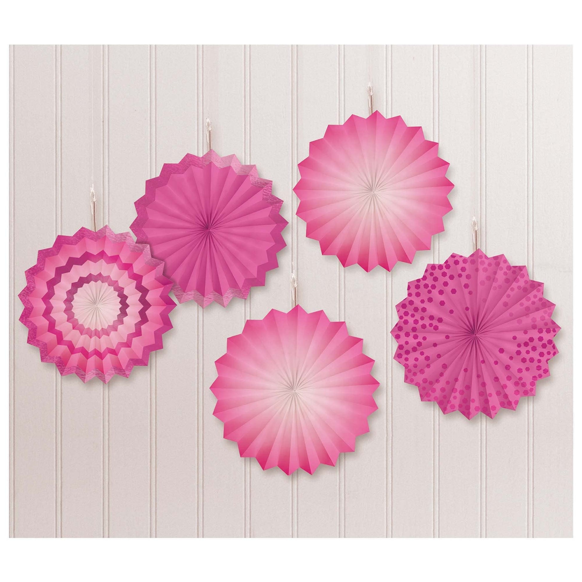 Amscan Dec Fan Mini Bright Pink- 5 Pack