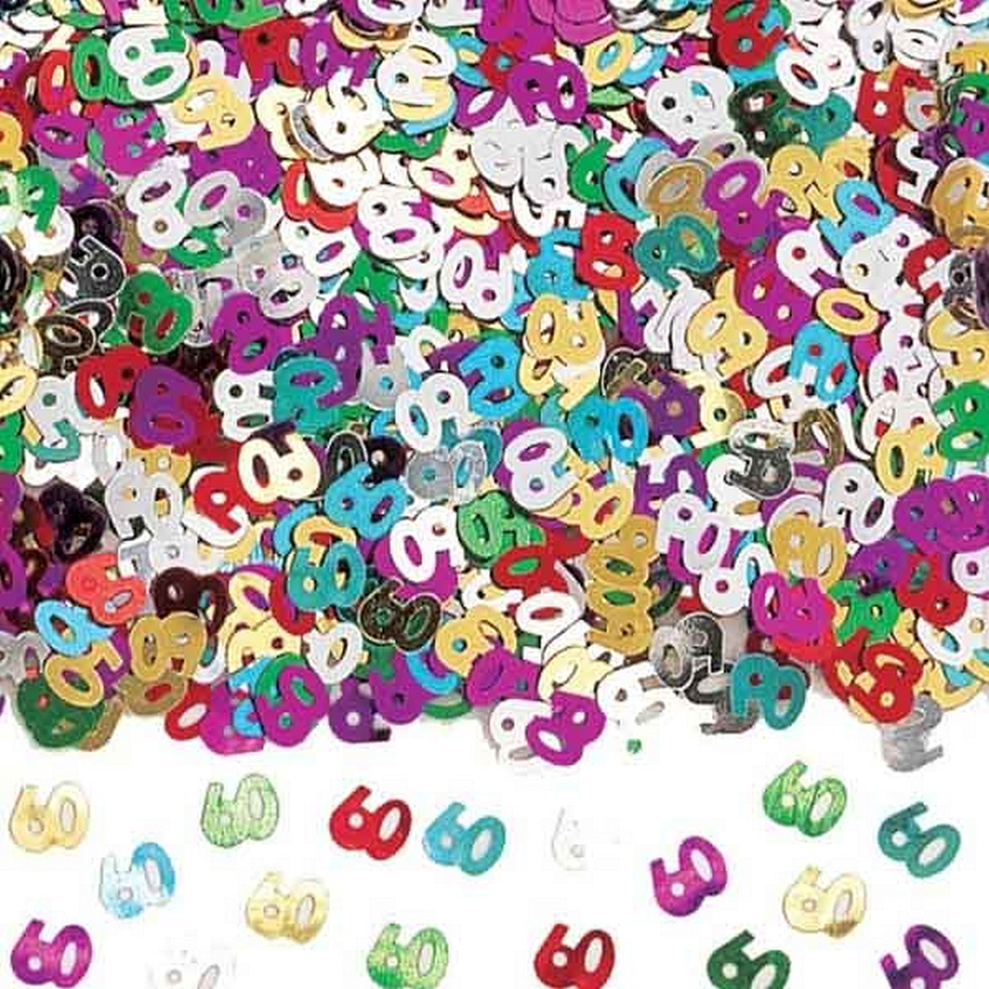 This product comes with 1 pack Multi Colour Metallic Number 60 Foil Confetti. A bright and colorful decoration perfect for your celebration. Features multi-color metallic foil confetti with number "60" cut-outs that makes your party extra special. A great party accent that can be used as table or centerpiece decorations for an extra-festive touch. This product is made of bright and colorful foil materials and weighs 14 grams in each pack.Box Contains1 x Retail Pack
