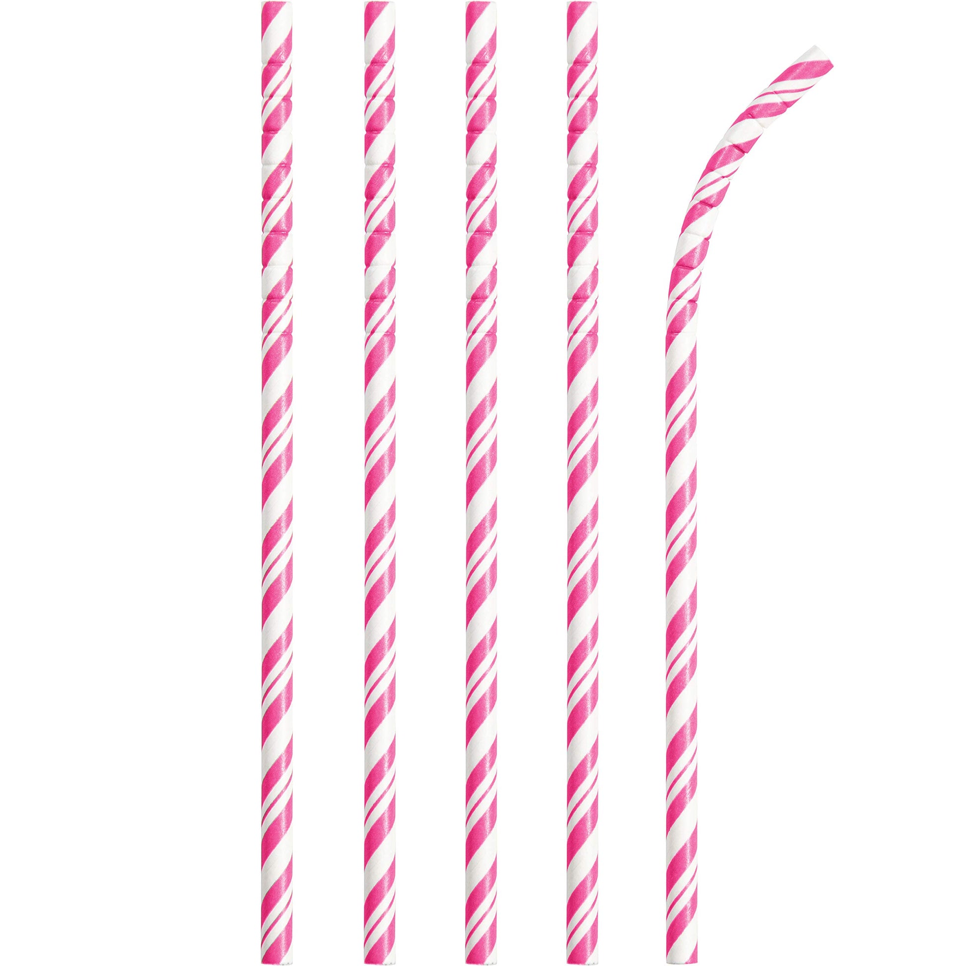 Creative Converting Eco-Flex Bendable Straws-24 Pcs, Paper, Candy Pink/White Stripe