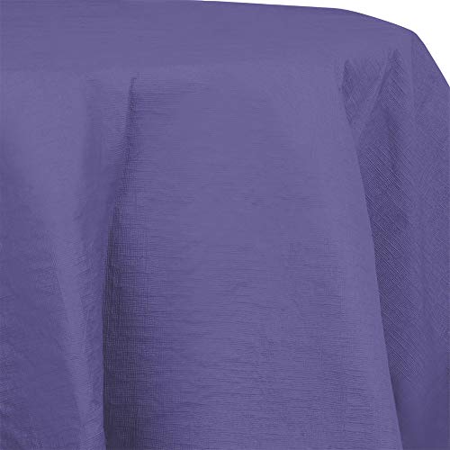 - Package includes 1 piece of purple plastic lined paper tablecover, 208cm