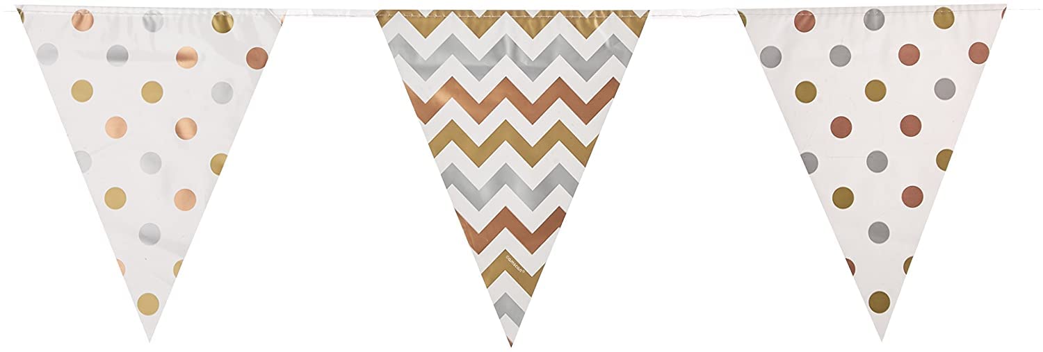 Amscan Mixed Metals Dots and Chevron Large Pennant Banner 4m