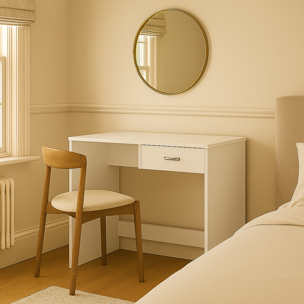 Product Details: Dimensions: 90 x 39.7 x 72 cm (W x D x H) Material: High-quality 16 mm particle board with melamine coating Colour: White Weight: 15 kg The compact drawer for optimal organisation Made in Ukraine Features: Compact surface for work and study Includes a drawer for easy organisation Benefits: Compact design - ideal for small British homes Timeless look that complements any interior Easy self-assembly with detailed instructions Low maintenance and durable for daily use