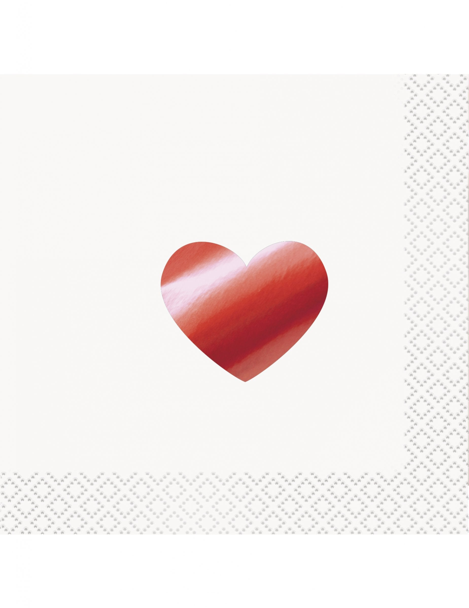 Unique Red Heart Foil Stamped Beverage Party Napkins x 16